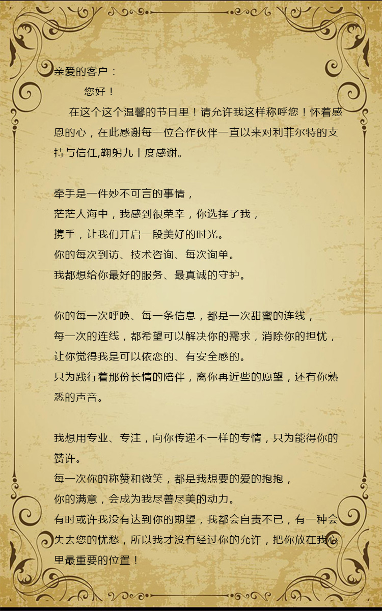 给利菲尔特合作伙伴的一封深情告白信!