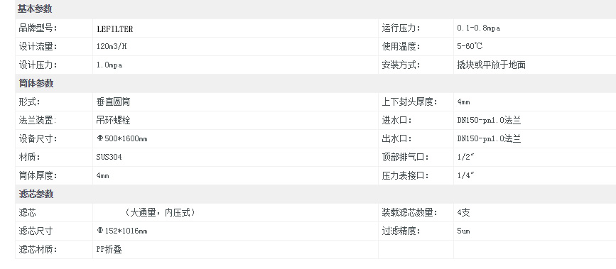 利菲爾特大流量保安過濾器結(jié)構(gòu)為圓柱形殼體,材質(zhì)為304或,316L不銹鋼;配以單支或多支濾芯。