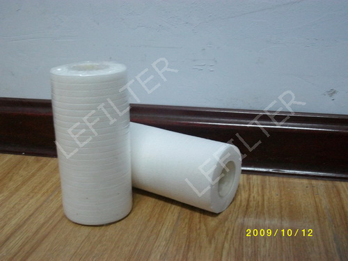 (2)過濾阻力小,濾流量大、納污量大、使用壽命長,本品在生產過程中纖維直徑及間隙可調,濾芯微孔內層小外層大,增大了流量和納污量,濾芯不易阻塞,延長使用壽命。