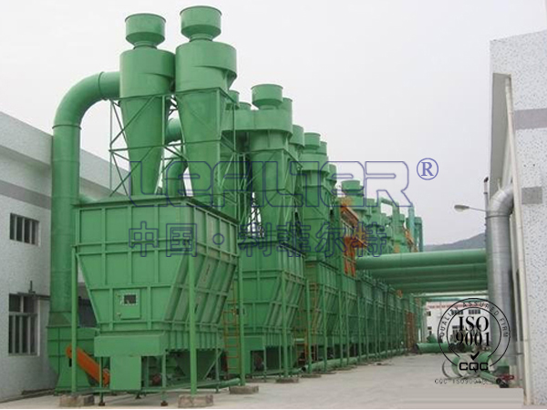 2、LF-CLPA型旋風除塵器筒體設計成雙錐體的外形,上錐體圓錐角較大,形成突縮,有利于形成灰環(huán),并將已濃縮的含塵煙氣從錐體旁路口引至灰塵隔離室內(nèi),避免已分離出的灰