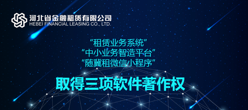 近日,由河北省金融租賃有限公司(以下簡稱“河北金租”)研發(fā)的“中小業(yè)務(wù)智造平臺”、“租賃業(yè)務(wù)系統(tǒng)”、“隨冀租微信小程序”三件軟件成果正式通過國家版權(quán)局審核,獲得計算機(jī)軟件著作權(quán),此舉進(jìn)一步完善了河北金租知識產(chǎn)權(quán)保護(hù)體系,也標(biāo)志著公司科技創(chuàng)新工作邁上新臺階。