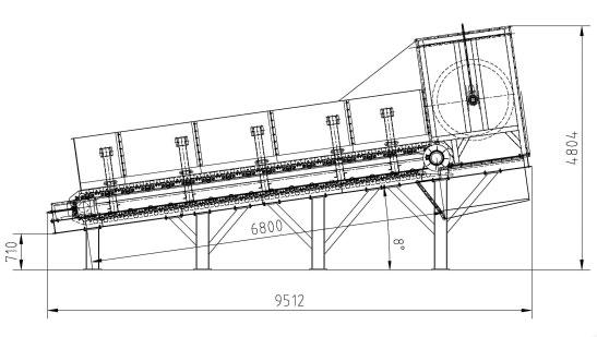 上料機(jī)構(gòu)作為生活垃圾處理線的第一道工序在整條處理線中有著至關(guān)重要的作用,它決定了整條處理線的處理速度和處理量。本公司為了保證生活垃圾處理線的平穩(wěn)可靠運(yùn)行,為這一環(huán)節(jié)設(shè)計(jì)了專用鱗板式輸送機(jī)。