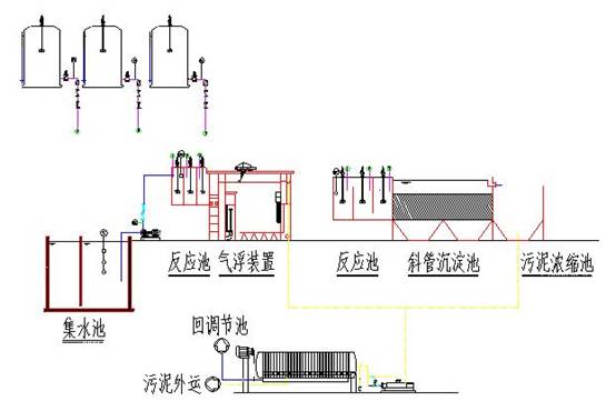 電鍍廢水處理設備由調節池、加藥箱、還原池、中和反應池、pH調節池、絮凝池、斜管沉淀池、廂式壓濾機、清水池、氣浮反應、活性炭過濾器等組成。