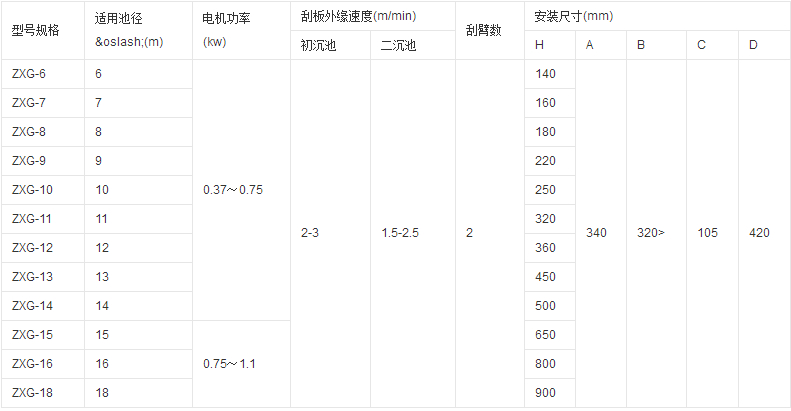 通過減速驅動和懸掛式組件的傳動,由刮板將污泥刮集到中心集泥槽,依靠靜水壓力或泵排出池外。采用中間進水和排泥,周邊排水,保證水流均勻。利用液位差自吸式排泥,有浮渣刮集排除裝置和過載保護裝置。